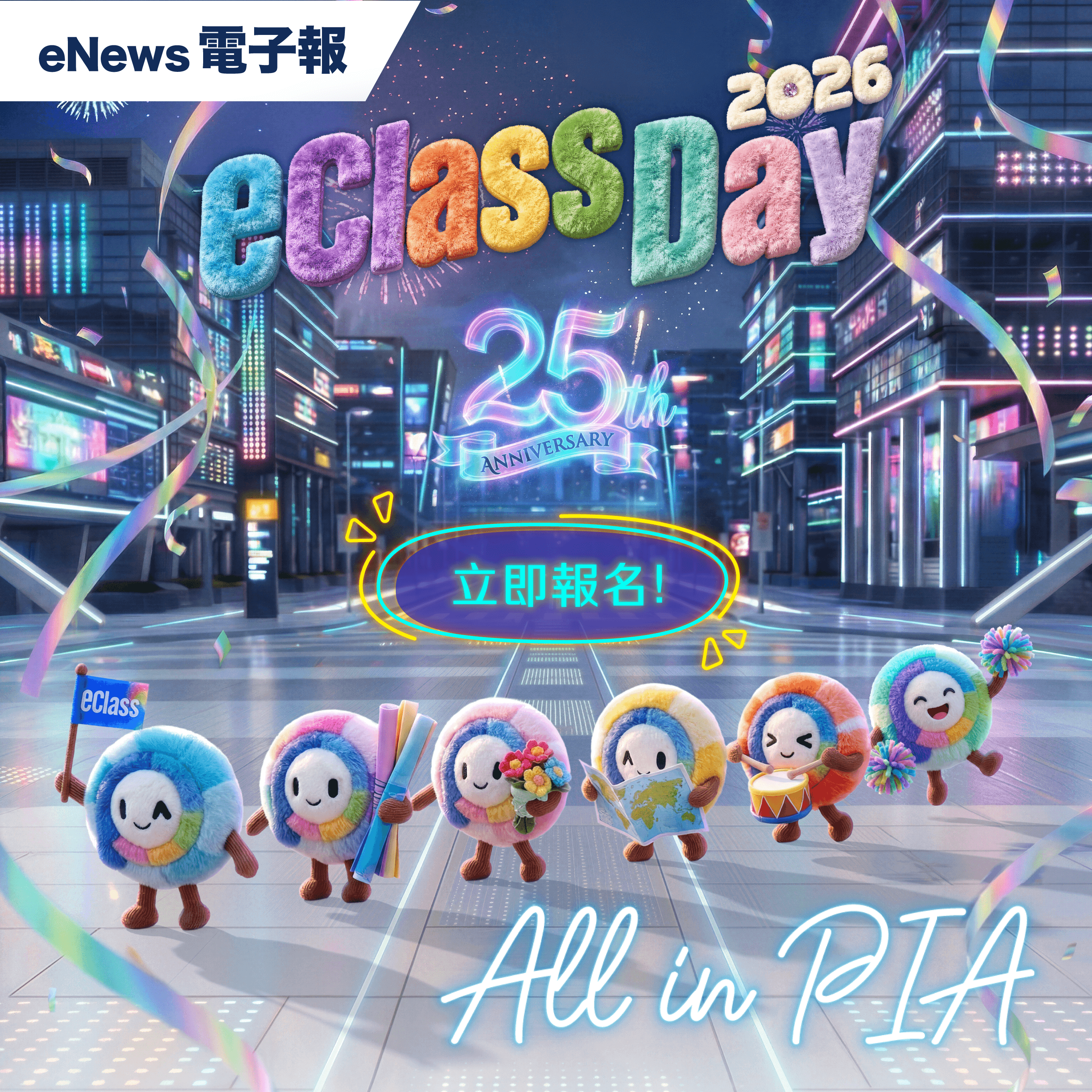 2026 年適逢 eClass 邁入25 週年銀禧紀念。在這別具歷史意義的時刻,我們更希望能與學界夥伴攜手,共同探索科技帶來的教育突破。承接去年「Welcome to U-to-PIA」的願景,今年我們的主題定為「All in PIA」,標誌著我們不再停留於對「Utopia」的想像,而是將這份憧憬真正落地。透過 eClass 專屬 AI 助手 PIA,讓那個曾經只存在於構想中的 AI 教育理想國,變成師生觸手可及的日常工具,實現更高效的應用與創新,全方位駕馭 AI 教育浪潮。