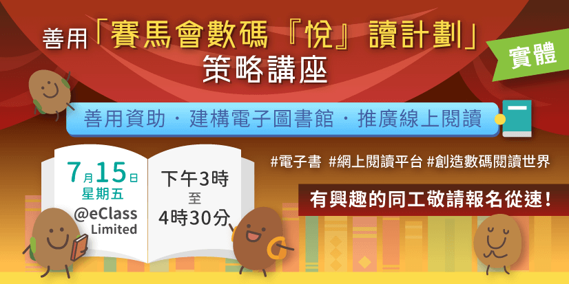 善用「賽馬會數碼『悅』讀計劃」策略講座 回顧, 最新消息, 活動By eclasswww2022-07-05善用「賽馬會數碼『悅』讀計劃」策略講座 實體場次 ******反應熱烈,實體場次滿額********* 日期:… Details